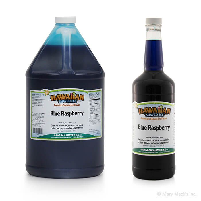 Hawaiian Shaved Ice Blue Raspberry snow flavor in quart size comes ready-to-use at a surprisingly cheap price. Once you start receiving reviews from customers though, you may find that you need to order this cone syrup in gallon jugs. It is available in concentrate, as well.
