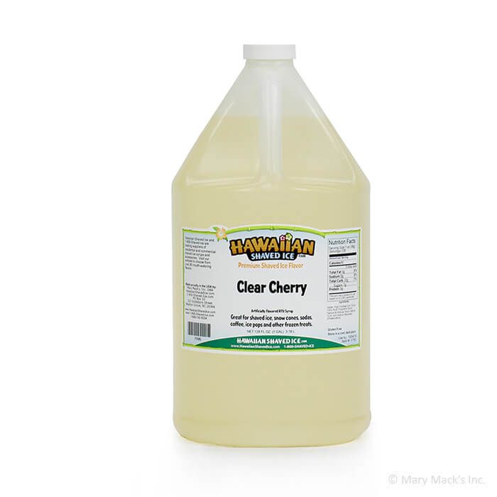 Cherry syrup is our number one shaved ice flavor because it is simply amazing! There is nothing quite like a refreshing shaver on a hot day that tastes just like a ripe, juicy cherry. It is a flavor that people gravitate towards all year-round. However, we understand that not everyone loves its bright red color, especially adults. For this reason, we offer Clear Cherry syrup. It is the same mouthwatering taste but in a clear formula. So, parents with little ones do not have to worry about cleaning red stains off kids when the sun starts melting their ice shaver faster than they can eat it.