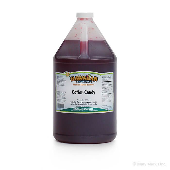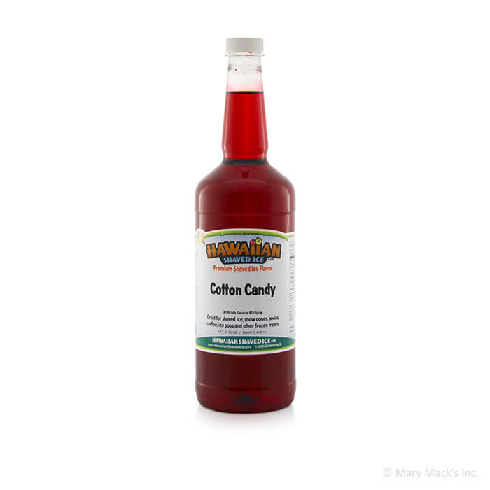 Customers of all ages can't get enough of our Cotton Candy shaved ice syrup. Drizzle this bright red flavoring on a snowball, and all of a sudden you are at the fair watching it get spun and waiting patiently for your turn in line to buy some. The second this snow cone flavor touches your tongue you taste a flavor explosion, much like the real thing. The only difference is that your fingers will not be coated in sugar from ripping pieces of freshly-spun goodness away from its stick. Plus, a snowcone has a lot fewer calories than a stick or bag of what was once known as "Fairy Floss."