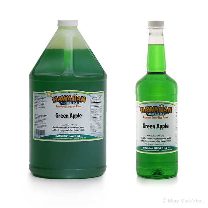 Like all other Hawaiian Shaved Ice premium syrups, Green Apple shaved ice can be ordered online individually. However, for the best price, you will include it as part of a multipack . These customized packs give you the opportunity to offer your customers a larger selection, without going over your spending budget.