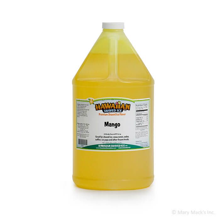 When customers want their taste buds transported somewhere tropical suggest that they try Mango shaved ice syrup on their snow cone. It is not hard to pretend that you are lying on a pristine beach, listening to the azure waves kiss the sand as soon as you taste this Hawaiian Shaved Ice flavoring. Mango snow syrup delights the palate exactly like the fruit. It offers a peachy-plum flavor with undertones of citrus. It is even an appealing yellowish-green color, just like the real thing.