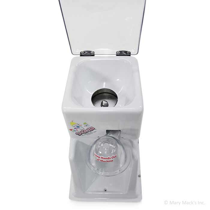 The Snowie Shaved Ice Machine 1000 model houses a powerful self-cooling 1⁄2 horsepower motor. The smart design holds a 4-pound bag of ice and can shave a 32 oz. serving in seconds. The high-impact plastic housing is durable and easy to clean. With its high quality and low price, this machine may be perfect for your needs!