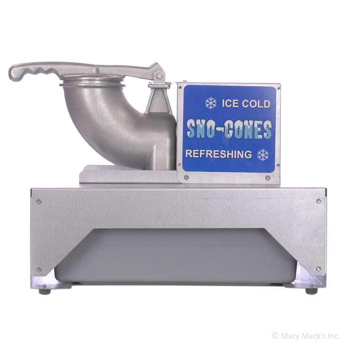 The surprising 1⁄3 horsepower motor is powerful enough to produce up to 500 pounds of snow cone ice per hour! The NSF approved ice tub slides conveniently beneath the machine to allow the operator to easily access ice on demand. For high volume locations, contact us about purchasing an additional tub to shave continuously for nonstop production.
