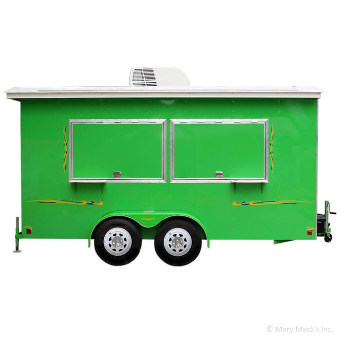 Well-equipped for the high-traffic shaved ice or snow cone entrepreneurs, this 6-Foot by 14-Foot concession trailer features dual serving windows with an awning door for efficient service. It comes in a variety of colors with simple yet eye-catching decals, drawing the masses to a welcoming environment.
