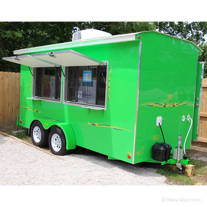 With so many features included, like the three-compartment sink, a hot water system, an easy-drain waste tank, and tons of other built-in accessories, production and service will be a breeze. If you prefer to pick and choose your add-ons, our shaved ice trailer team can custom-make a concession trailer just for you. Please see the Optional Add-On Accessories in the "Specs" below.