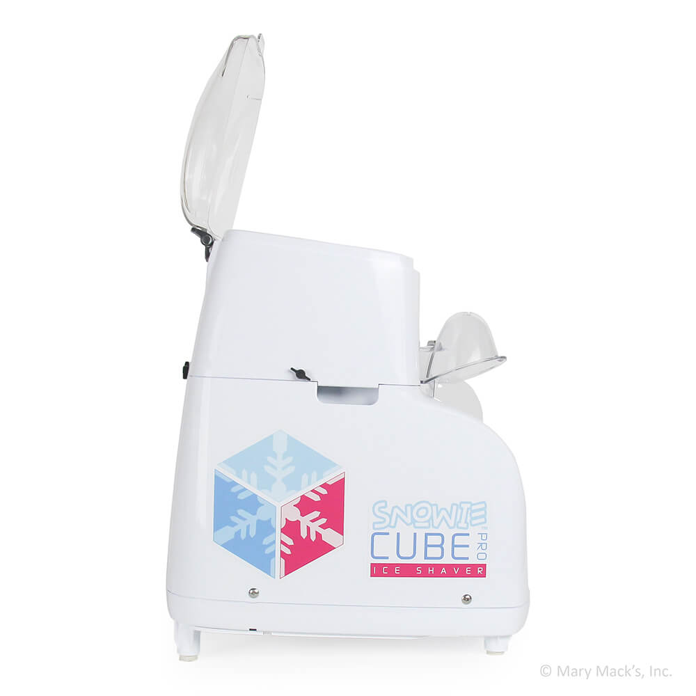 With the same great features as the previous model, the Snowie Cube Pro shaved ice machine is an incredibly fast ice shaver. It features a self-cooling, 1-horsepower motor, making this ice shaver perfect for high-volume locations. It can produce mounds of fluffy ice from cubes in seconds and can produce over 1,500 servings per day!