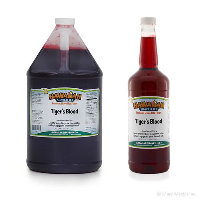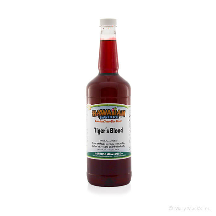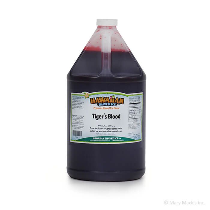 Tiger's Blood snow cone syrup has a lot going for it. First, it has the coolest name out of all the snow flavors. Second, the color is a bright red that snow cone customers tend to get a little silly over. Third, it is one of the most scrumptious flavors you will ever taste.